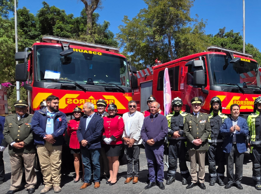 En la Plaza de Armas de Copiapó se realizó la entrega de 6 nuevos carros Bomba Tanque de 12 mil litros para los Cuerpos de Bomberos de Copiapó, Diego de Almagro, Freirina, Huasco, Tierra Amarilla y Vallenar, máquinas que se pondrán al servicio de la comunidad en los próximos días....