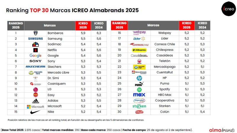 El estudio, que se realiza desde el 2015, busca reflejar el nivel de confianza que los chilenos expresan sobre diversas empresas y organismos. Este año consideró 2.815 personas, 40 categorías y 316 marcas que midieron honestidad y transparencia, responsabilidad, empatía, respaldo y cercanía.